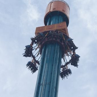 Falcon's Fury is a drop tower at Busch Gardens Tampa in Florida that lifts riders to 335 feet (102 meters) before sending them downward at 60 miles per hour (96 kilometers per hour). The structure stands in the Pantopia section and ranks among the tallest freefall attractions in North America.