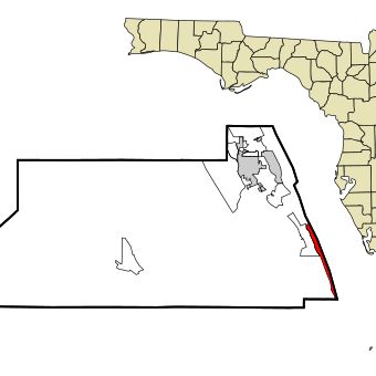 Jupiter Island is a barrier island along Florida's eastern coast that stretches for several miles. The island has a narrow, elongated form with beaches and residential neighborhoods located on the elevated landmass.