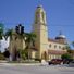The Cathedral of Saint Mary presents Mediterranean Revival architecture with arched windows, ornate balconies, and stucco walls topped by red-tiled roofs.