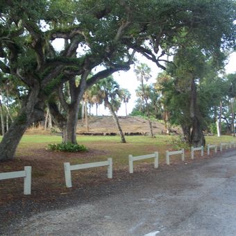 The park grounds include an ancient Native American mound that contains human remains connected to the Ais Indian heritage.