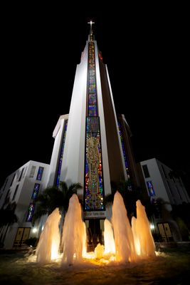The church sanctuary accommodates 2,300 people and features a 303-foot tower in modern architectural design at 5555 North Federal Highway.