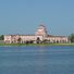 Harder Hall is a Spanish Colonial Revival building in Sebring featuring curved doorways, stucco walls, and a distinctive red-tiled roof. The structure stands near Lake Jackson and preserves its original interior design elements.