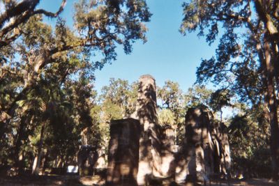 The ruins of a sugar mill, constructed from coquina stone, stand amid 150 acres of natural Florida landscape near Bulow Creek.