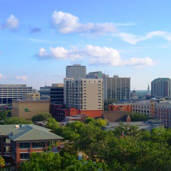 The capital of Florida sits on rolling hills covered with thick vegetation and neighborhoods spread across a wide area. Brick buildings from the early 20th century stand alongside modern government complexes, while green spaces and patches of forest interrupt the built environment between districts.