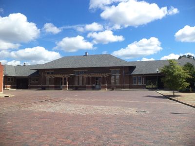 Heritage Plaza is a historic railroad district in Albany containing 1800s structures like the Tift Warehouse, Union Station depot, and Railway Express Agency building, all positioned along a brick-paved street. Today the site houses a history museum, science museum with planetarium, and an exhibition of historic railroad cars.