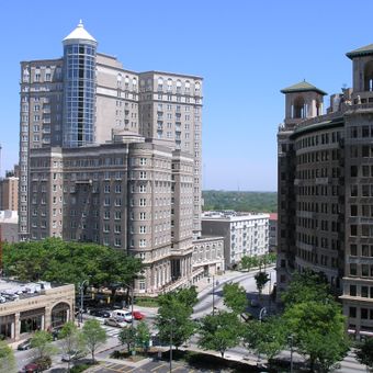 The district contains the Cox-Carlton Hotel, which started as a bachelor residence in 1925 before transforming into a modern Hotel Indigo property.