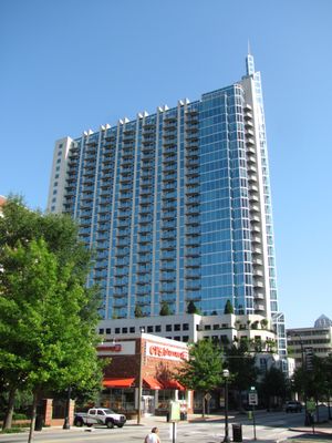The construction of this residential tower in 2005 marked a period of growth in Atlanta's Midtown district, replacing the former Atlanta Cabana Motel.