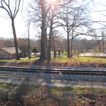 An active rail line runs through Maddox Park, marking the future route of the Atlanta BeltLine that will connect a series of parks.