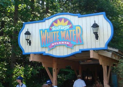 Six Flags White Water spans multiple acres with water slides, wave pools, and lazy rivers spread throughout the landscaped grounds.