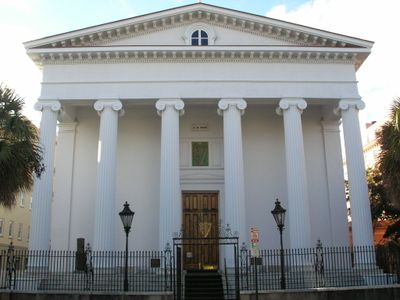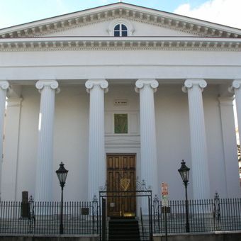 Hibernian Hall, Greek Revival landmark on Meeting Street, Charleston, US.