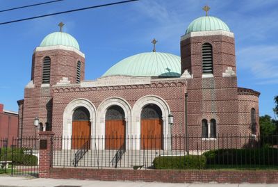 The Greek Orthodox Church of the Holy Trinity features a central dome constructed by the Guastavino tile Company of Woburn, Massachusetts and traditional religious icons.