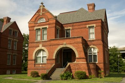 William Enston Home is a residential complex in Charleston, South Carolina, comprising approximately 29 red brick structures across 12.1 acres, including cottages, Memorial Hall, and a water tower. The architecture combines Romanesque Revival and Queen Anne elements with residential units that continue to serve the community as affordable housing.