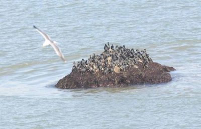The formation serves as a natural habitat for Brandt's cormorants, which gather on its surface during low tides throughout the year.