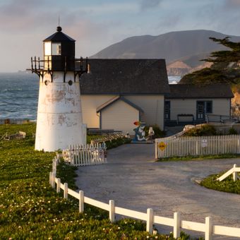 Point Montara Light is a lighthouse on California's Pacific Coast, featuring a 30-foot steel tower rising from coastal bluffs. The facility includes various buildings and offers lodging in private rooms and dorms with direct access to a secluded cove beach.