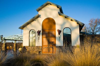 The winery combines modern architectural elements with natural materials in its tasting room, creating a space that reflects California wine country traditions.