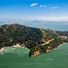 The island stands in the Chilean waters, characterized by its rocky shores and native vegetation patterns visible along its coastline.