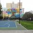 The mural titled Everyone Deserves a Home reflects values that resonate deeply within the neighborhood. Sculptures including a bronze piece and globe design express the diversity of people who gather in this space.