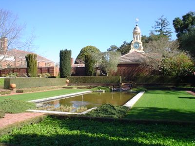 The gardens represent Anglo-American design principles, combining Italian formality with influences from notable designers Edwin Lutyens and Gertrude Jekyll.