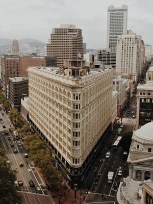 Phelan Building, Flatiron office building in Financial District, San Francisco, United States.