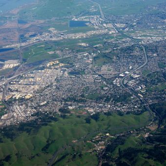 Martinez lies along the Carquinez Strait in the northern section of the San Francisco Bay Area, connecting residential areas with commercial and industrial zones. The city rolls across gentle hills that slope down to the water, offering access to waterfront paths and parks along the shore.