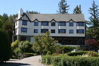The Benbow Inn spans across 3 acres of land near the Eel River, featuring Tudor Revival architecture with distinctive Douglas fir construction details.
