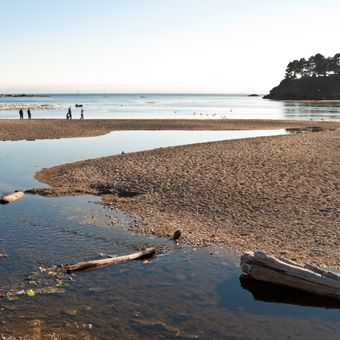Van Damme State Park encompasses 1,831 acres of land, featuring dense forests, coastal views, and a network of hiking trails along Little River.