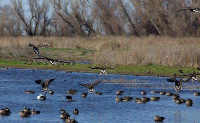 The wetlands support over 150,000 ducks and 60,000 geese during winter months, making it a central location for waterfowl migration in California.