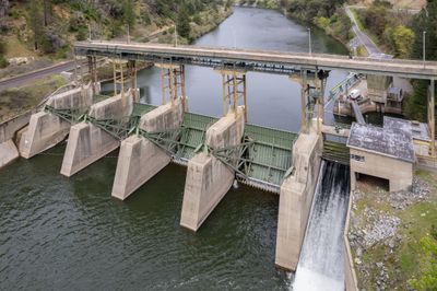 Poe Dam is a concrete gravity dam in Butte County that holds back water from the Feather River area. The structure sits in a narrow canyon section where water management and power generation occur through engineered systems.