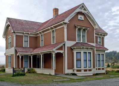 The house represents the architectural evolution of Oregon farming estates, combining Queen Anne and Eastlake styles in its detailed wooden construction.