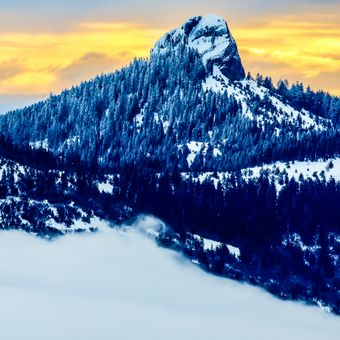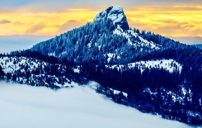 The 570-foot-tall Pilot Rock formation rises from the western Cascade Range near the Siskiyou Mountains, visible from 40 miles across Shasta and Rogue valleys.