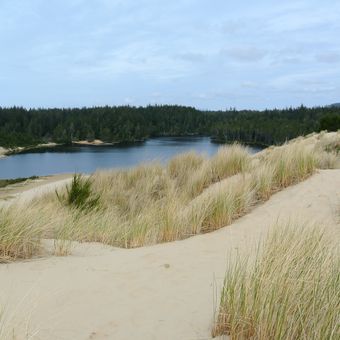 The 1,400-acre park features two freshwater lakes, Cleawox and Woahink, surrounded by coastal forests and rolling sand dunes along the Oregon coast.