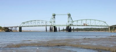The Bullards Bridge features two camelback truss spans and stretches 702 feet across the Coquille River near the Pacific Ocean coast.