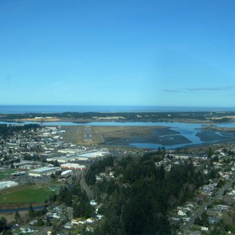 The city contains Oregon's only coastal commercial airport, providing direct transportation access alongside Highway 101 and the McCullough Bridge entrance.