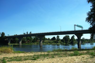 The Center Street Bridge extends across the Willamette River, connecting West Salem and Oregon Route 22 to the city center of Salem.