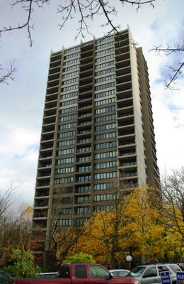 The architectural firm Skidmore Owings Merrill designed this residential tower in 1965, making it Portland's tallest structure until the Bank of California Tower surpassed it in 1969.