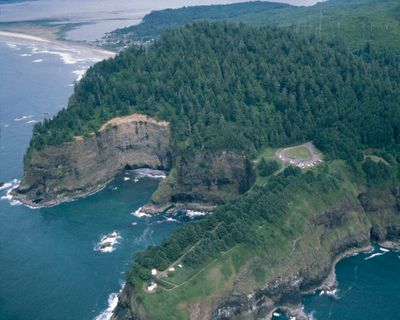 Cape Meares National Wildlife Refuge extends across 138 acres of coastal cliffs and old-growth forest bordering the Pacific Ocean in northern Oregon.