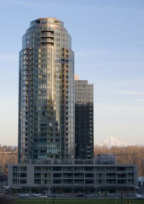 Construction of the tower, requiring an investment of 130 million dollars, marked the first structure reaching maximum height allowance in South Waterfront during 2007.