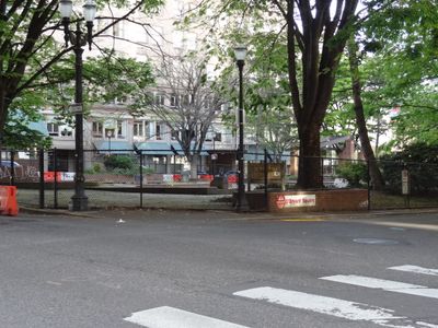 Darcelle XV Plaza, Urban park in downtown Portland, United States.