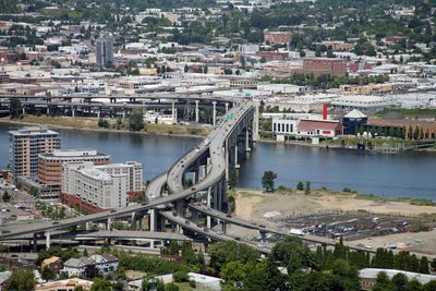 Marquam Bridge, Double-deck cantilever bridge in Portland, United States.