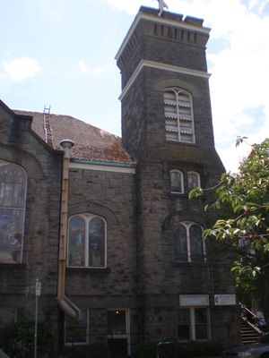 The congregation established in 1890 at a shoe factory, constructed their first wooden structure in 1891, and completed the current stone building in 1911.