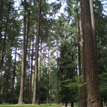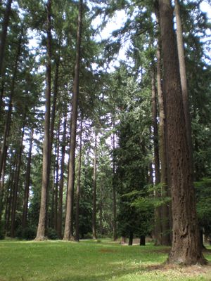 Pier Park extends across 85 acres of land, featuring evergreen forests, sports fields, and recreational facilities in North Portland's residential district.