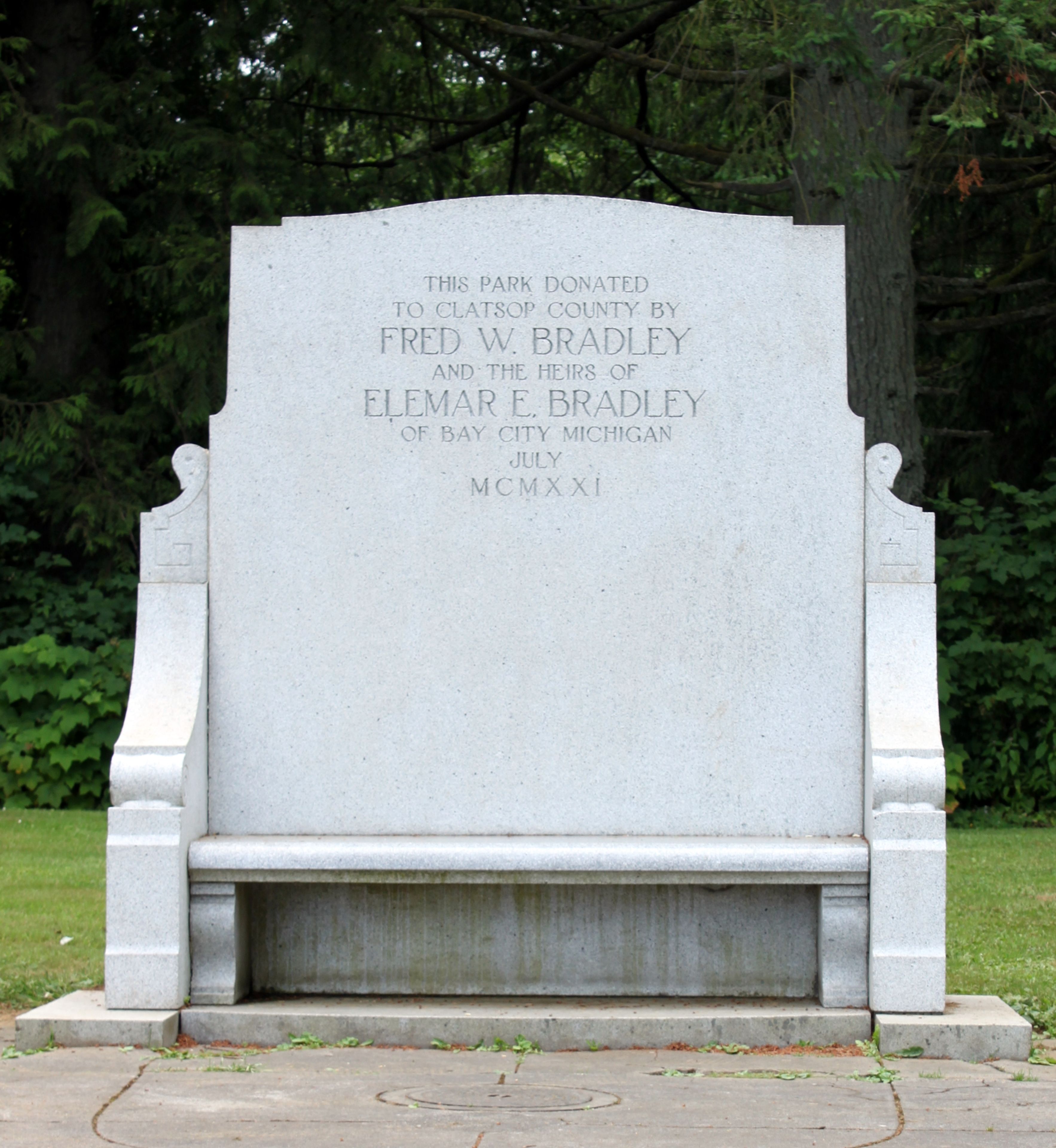 The land was donated to Clatsop County in 1921 by Fred W. Bradley and transferred to the Oregon Highway Division in March 1922.