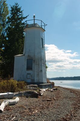 This structure represents Puget Sound's only unmanned lighthouse, operating through photoelectric cells with a light output of 1,500 candlepower.