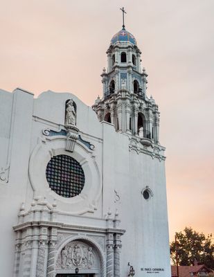 The cathedral incorporates design elements from Spanish and Italian Renaissance styles, reflecting European architectural influences in American religious buildings.