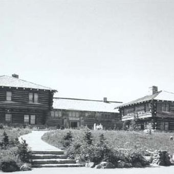 The buildings represent the National Park Service rustic architecture style, incorporating local materials such as white pine and stone from nearby locations.