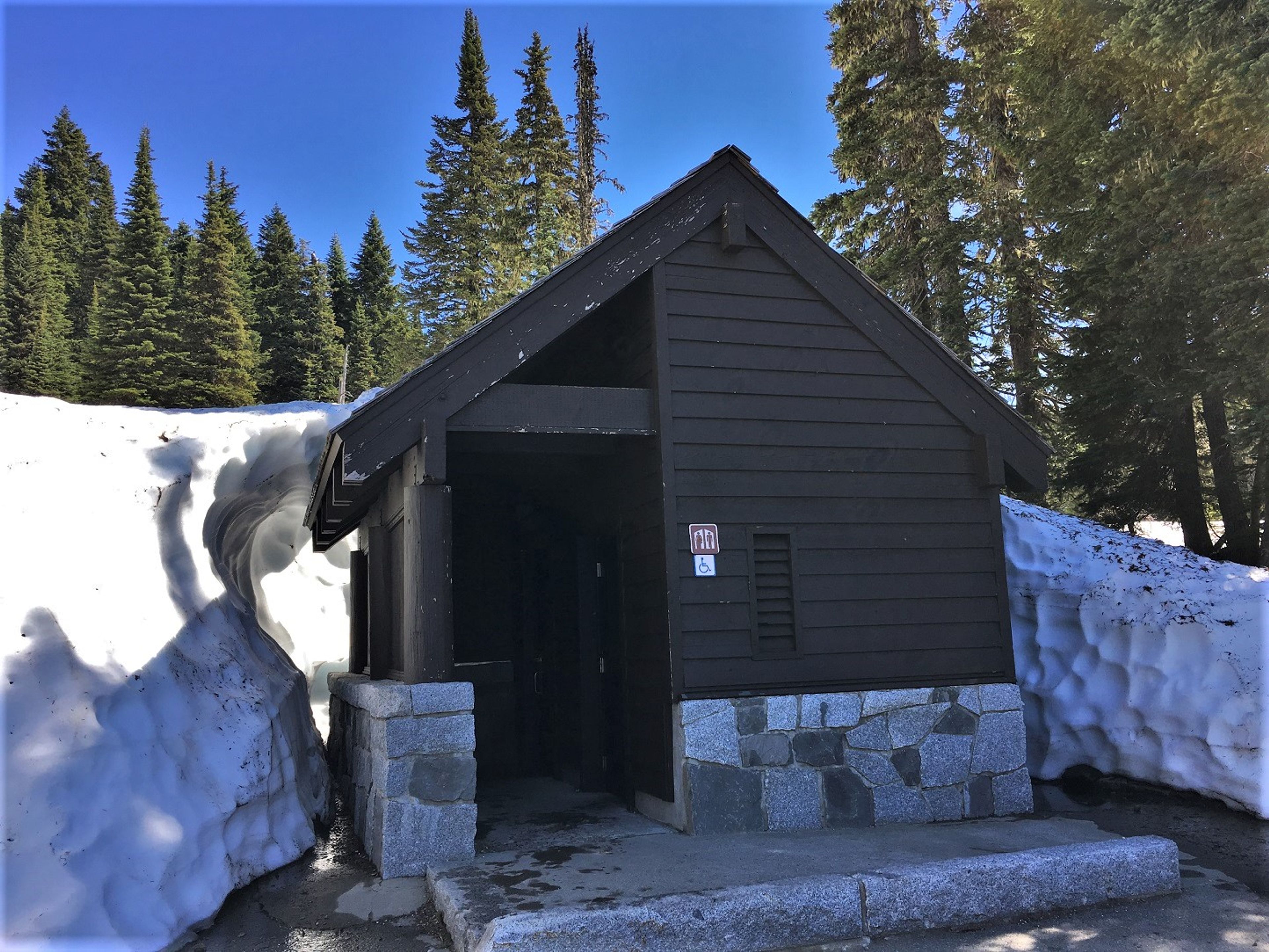 Open during summer months from June to October, the facility provides restroom services to visitors exploring Mount Rainier National Park.