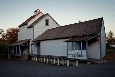 The Thorp Mill stands as a wooden three-story structure on the banks of the Yakima River, featuring original milling equipment and machinery from the 1880s.