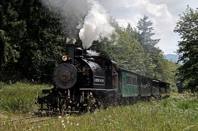 The railway features a 1929 Baldwin 2-8-2ST Steam Locomotive weighing 90 tons, originally manufactured at Baldwin Locomotive Works in Philadelphia.