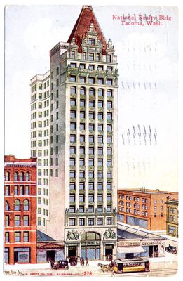 The structure represents the banking sector expansion in the Pacific Northwest during the early 1900s, when Tacoma emerged as a financial center.