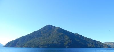 The mountain rises above Lake Crescent's north shore, reaching an elevation of 3,100 feet with a prominence of 700 feet.